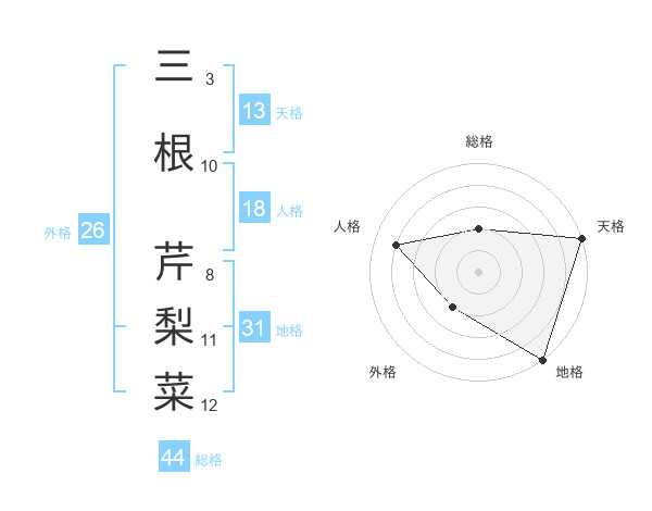 三根 芹梨菜さんを姓名の画数から五運を鑑定