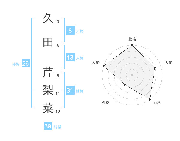 久田 芹梨菜さんを姓名の画数から五運を鑑定