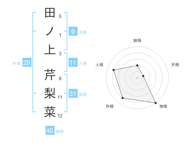 田ノ上 芹梨菜さんの地格は31画の5点!