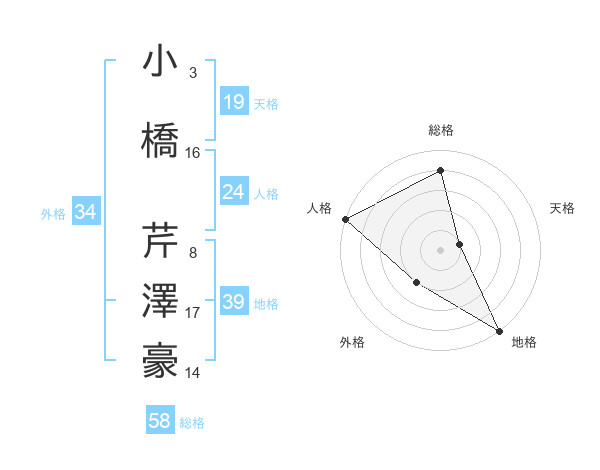 小橋 芹澤豪さんを姓名の画数から五運を鑑定