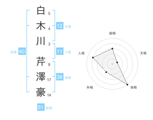 白木川 芹澤豪さんの地格は39画の5点!