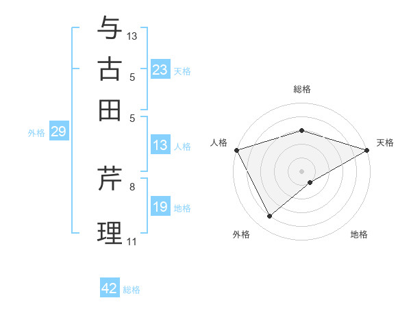 与古田 芹理さんを姓名の画数から五運を鑑定