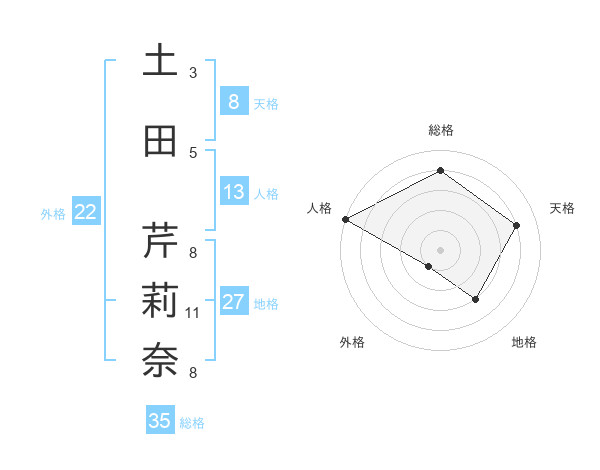 土田 芹莉奈さんの総格は35画の4点