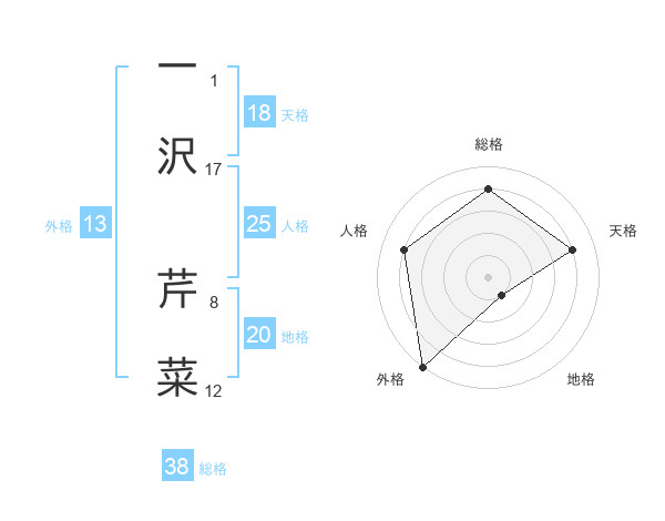 一沢 芹菜さんの外格は13画の5点!