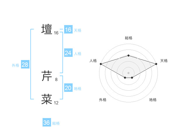 壇 芹菜さんを姓名の画数から五運を鑑定
