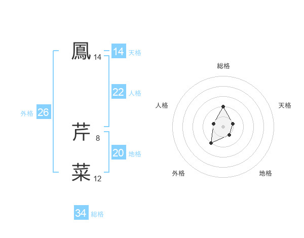 鳳 芹菜さんを姓名の画数から五運を鑑定