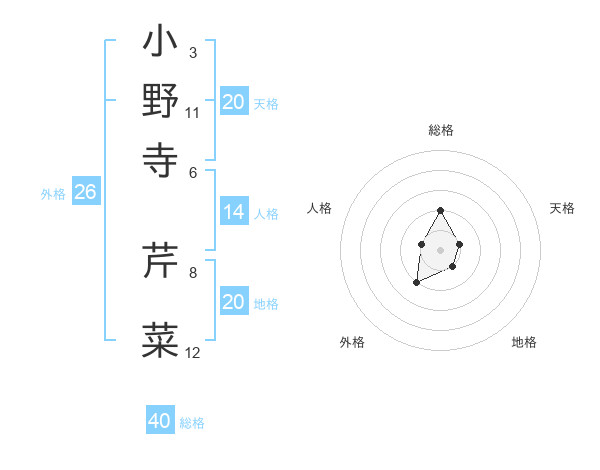 小野寺 芹菜さんの天格は20画の1点!