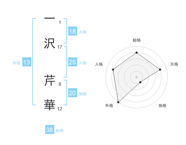 一沢 芹華さんの天格は18画の4点!