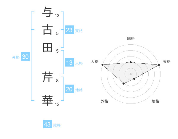 与古田 芹華さんを姓名の画数から五運を鑑定