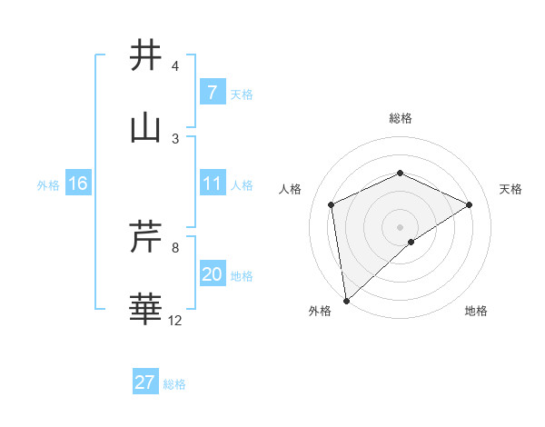 井山 芹華さんの総格は27画の3点!