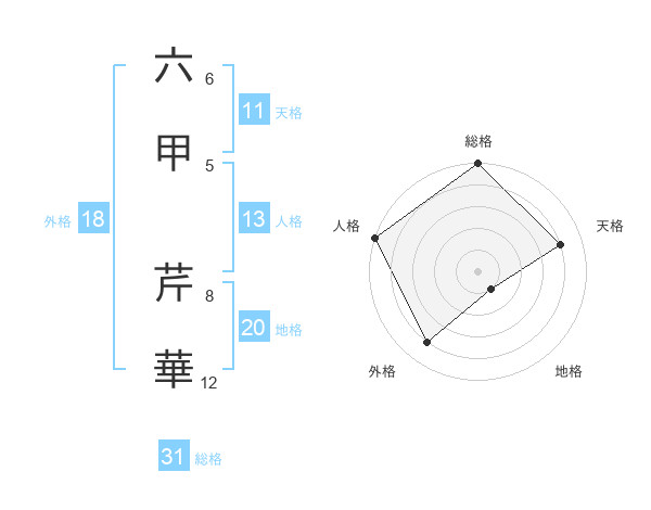 六甲 芹華さんの総格は31画の5点!