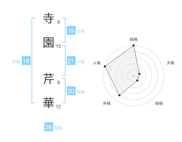 寺園 芹華さんの天格は19画の1点!