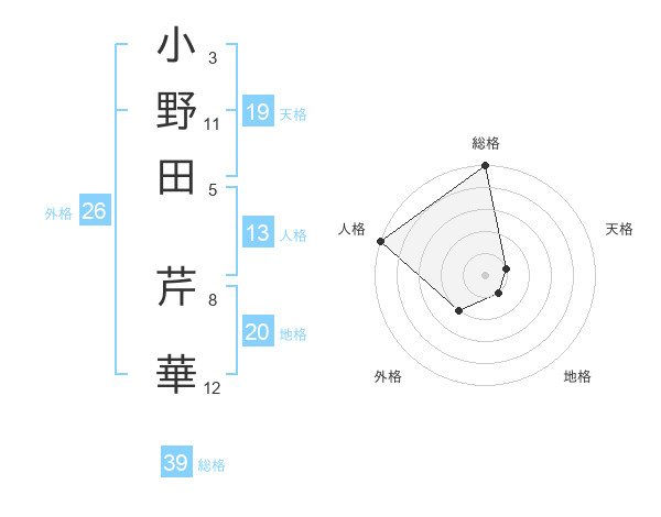 小野田 芹華さんを姓名の画数から五運を鑑定