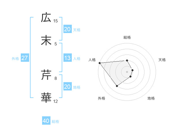 広末 芹華さんの総格は40画の2点!