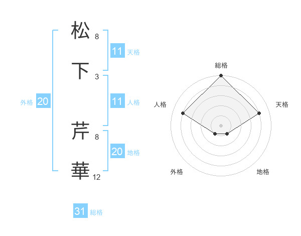 松下 芹華さんの総格は31画の5点!
