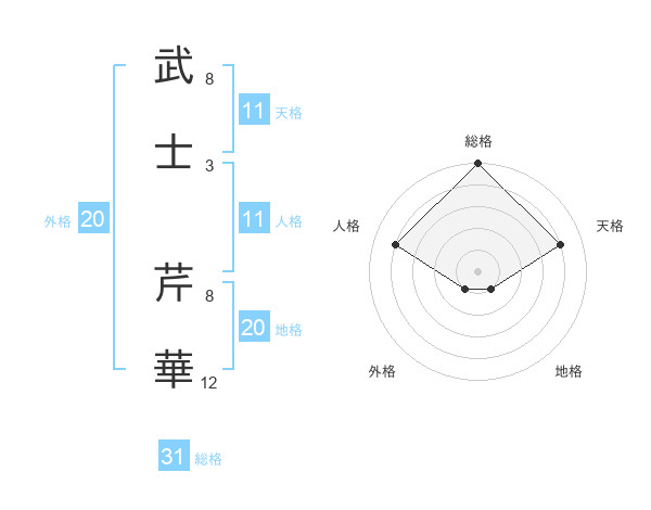武士 芹華さんの総格は31画の5点!