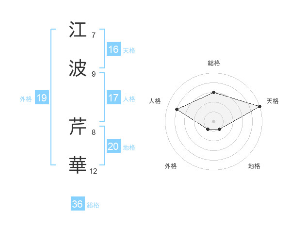江波 芹華さんの天格は16画の5点!
