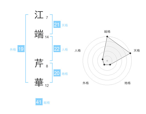 江端 芹華さんの天格は21画の5点!