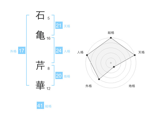 石亀 芹華さんの天格は21画の5点!