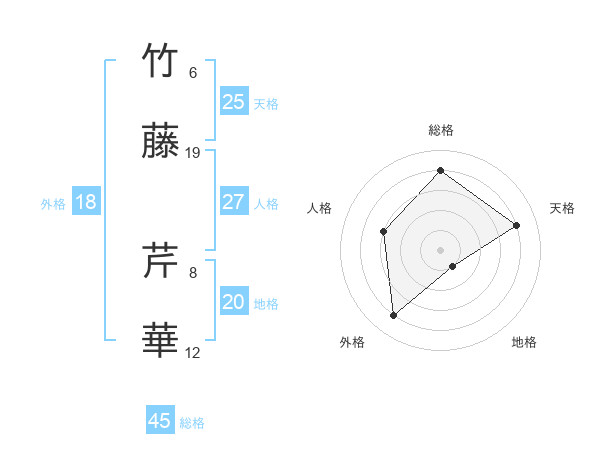 竹藤 芹華さんの総格は45画の4点!