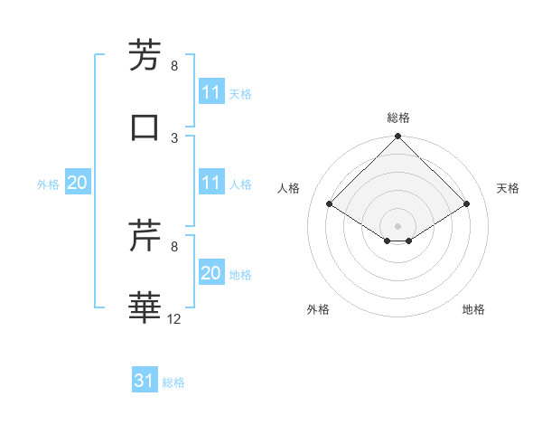 芳口 芹華さんの外格は20画の1点!