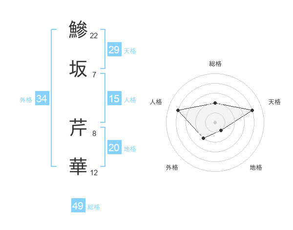 鰺坂 芹華さんの天格は29画の4点!