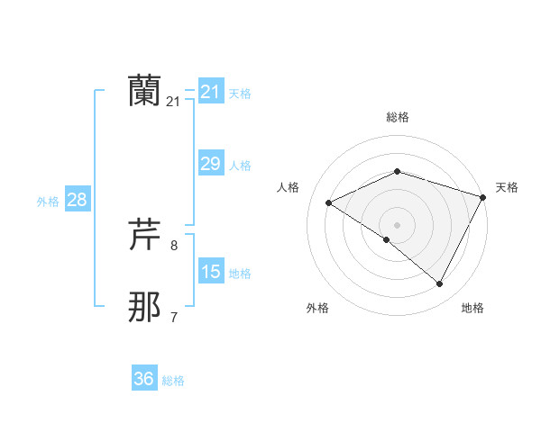 蘭 芹那さんの天格は21画の5点!