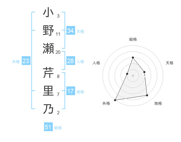 小野瀬 芹里乃さんを姓名の画数から五運を鑑定