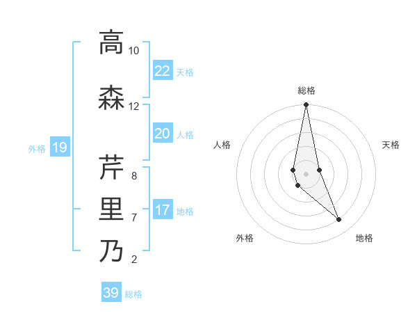 高森 芹里乃さんを姓名の画数から五運を鑑定