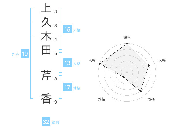 上久木田 芹香さんを姓名の画数から五運を鑑定