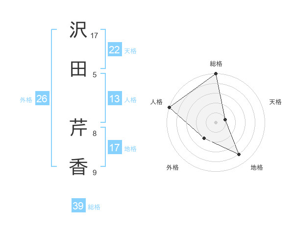 沢田 芹香さんを姓名の画数から五運を鑑定