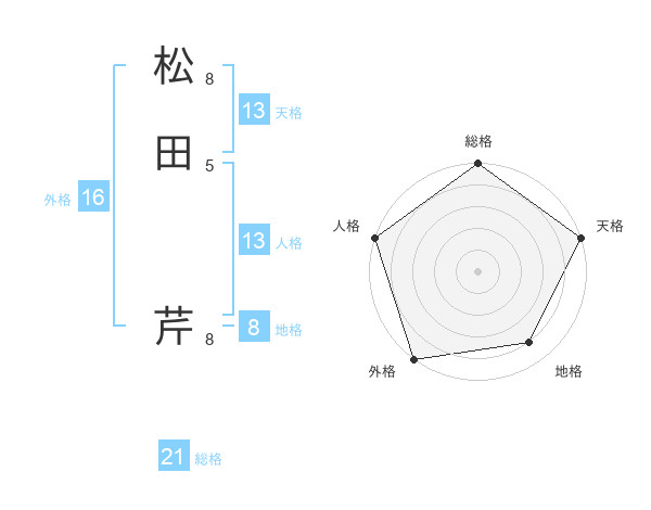 松田 芹さんの総格は21画の5点!