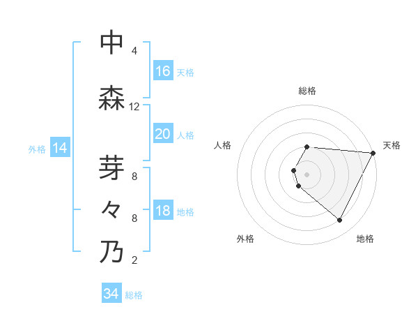 中森 芽々乃さんの総格は34画の2点!