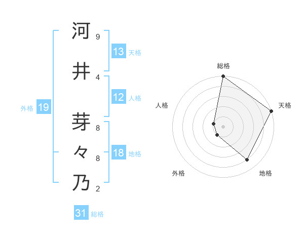 河井 芽々乃さんを姓名の画数から五運を鑑定