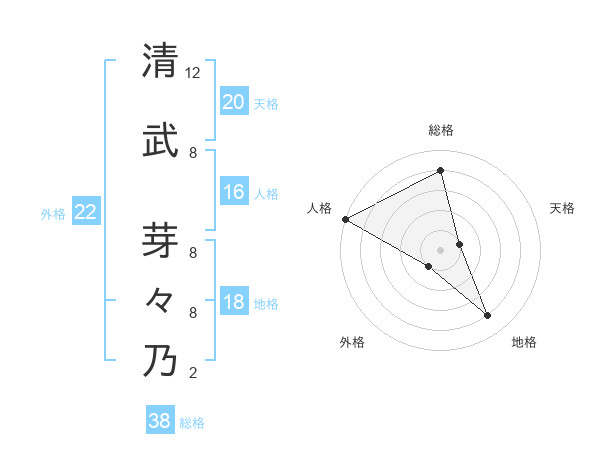 清武 芽々乃さんを姓名の画数から五運を鑑定