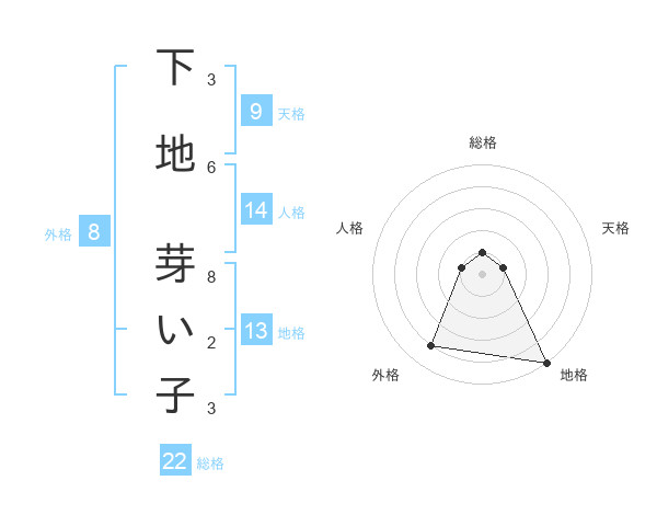 下地 芽い子さんを姓名の画数から五運を鑑定