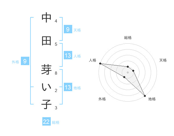 中田 芽い子さんを姓名の画数から五運を鑑定