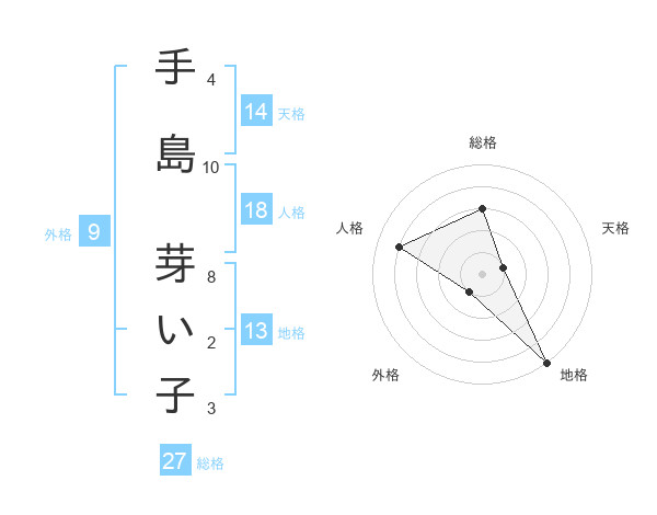 手島 芽い子さんを姓名の画数から五運を鑑定
