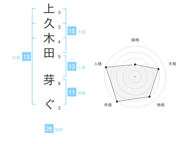 上久木田 芽ぐさんを姓名の画数から五運を鑑定