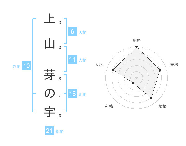 上山 芽の宇さんを姓名の画数から五運を鑑定