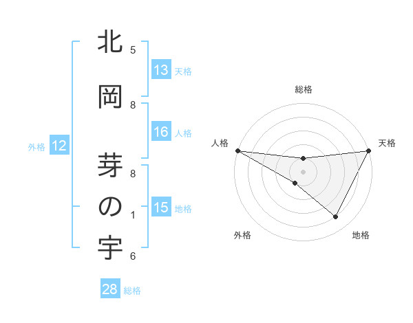 北岡 芽の宇さんを姓名の画数から五運を鑑定