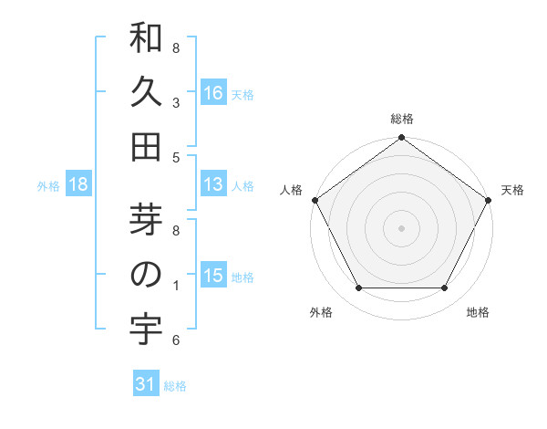 和久田 芽の宇さんを姓名の画数から五運を鑑定