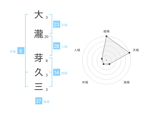 大瀧 芽久三さんを姓名の画数から五運を鑑定