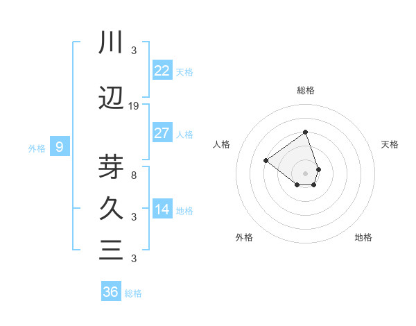 川辺 芽久三さんの総格は36画の3点!