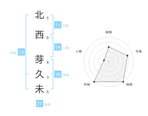 北西 芽久未さんの総格は27画の3点!