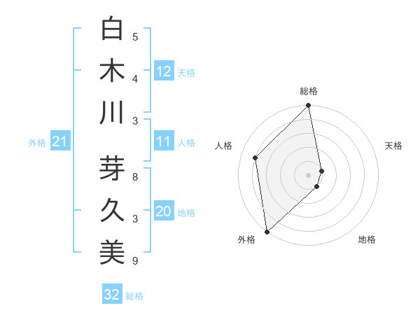 白木川 芽久美さんを姓名の画数から五運を鑑定