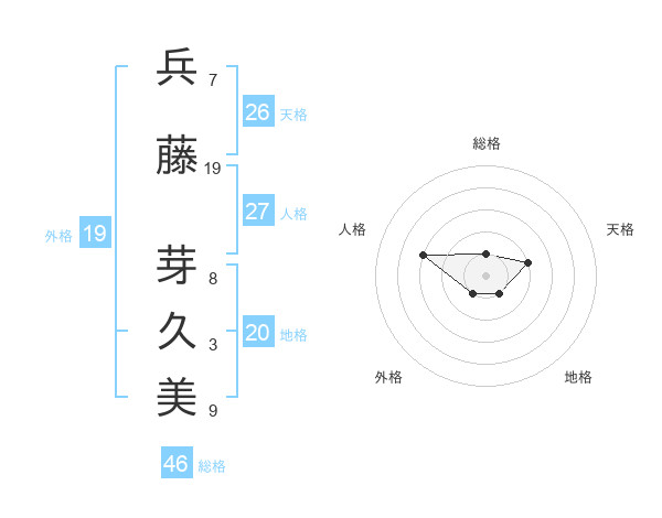 兵藤 芽久美さんを姓名の画数から五運を鑑定