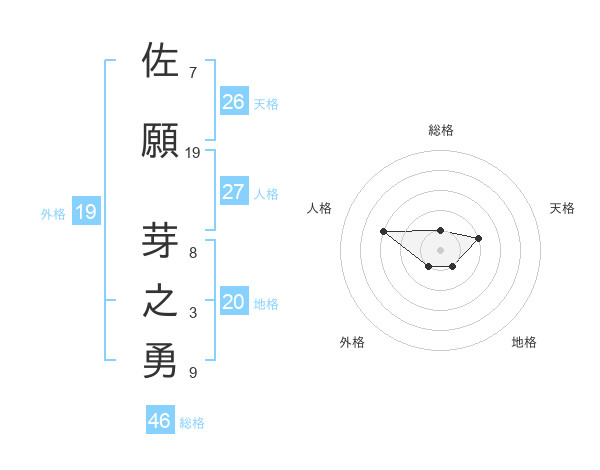 佐願 芽之勇さんを姓名の画数から五運を鑑定
