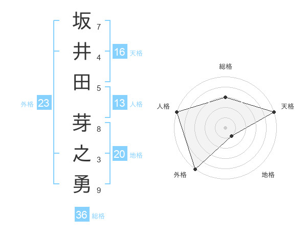 坂井田 芽之勇さんの外格は23画の5点!