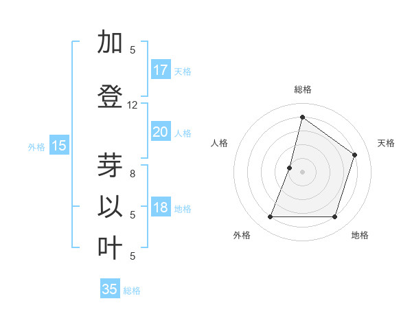 加登 芽以叶さんを姓名の画数から五運を鑑定